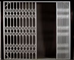 Constituída por prumos verticais perfilados em perfil sextavado a partir de aço laminado a frio, com calhas superiores e inferiores em aço de 2mm de espessura e com fechaduras de segurança incorporadas. A calha inferior pode ser rebatível e o corpo da grade quando esta está recolhida pode ser giratório para desimpedir portas, montras ou janelas.