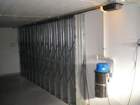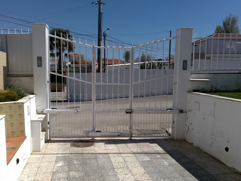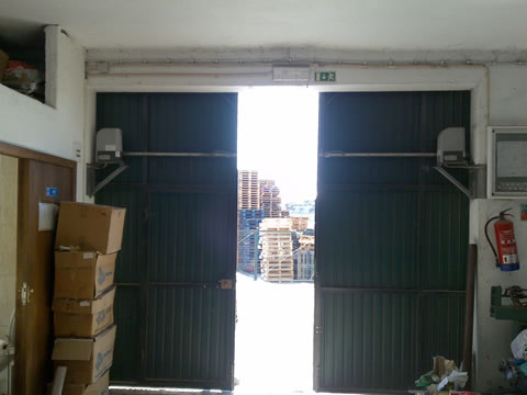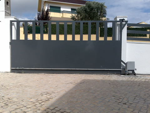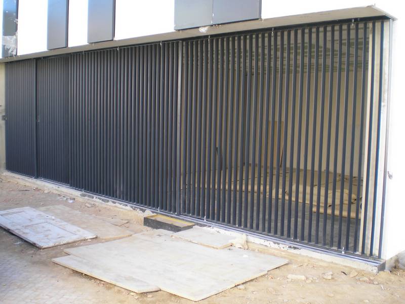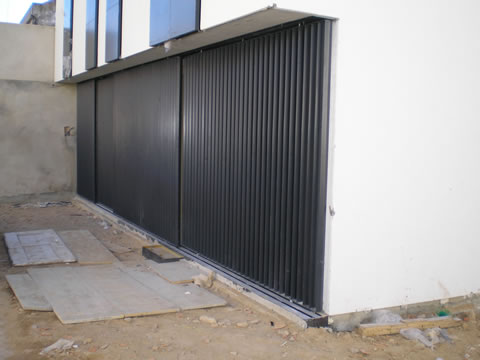 Características; Painel injectado poliuretanos.com chapa dupla de 40mm de espessura, com painel ante-dedos com borracha em todo o perímetro, calhas galvanizadas de 2 mm de, rodízios de nylon com rolamentos, molas de torção com topos e suportes galvanizados com sistema de ruptura de cabos. Dobradiças,cabos de aço e ferrolho para o interior.